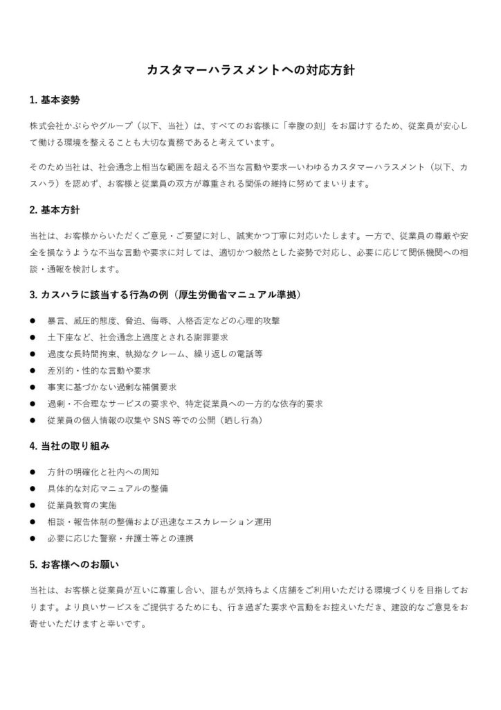 カスタマーハラスメントへの対応方針について