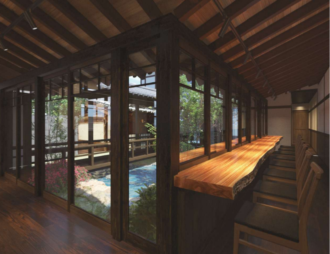 福岡・大名に誕生する『炭焼 うな富士』は築100年以上の古民家と大正ロマンを残す事務所部分を活かした唯一無二の空間。中庭に池を配した趣ある造りで、非日常のひとときを演出します。