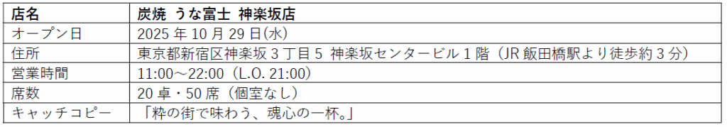 粋の街・神楽坂に“魂心の一杯”を届ける新店誕生『炭焼 うな富士 神楽坂店』 10月29日(水)オープン